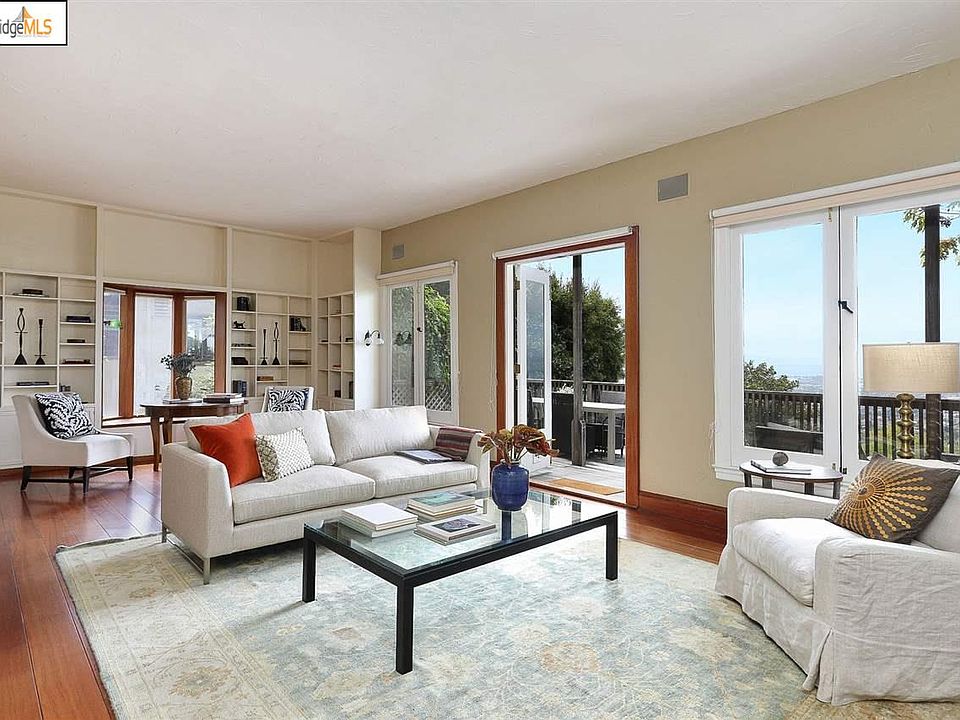NEW PRICE! New look! Enjoy Provence in Berkeley with this dramatic Berkeley Hills view home. A serene and private sanctuary with views from every level. Multiple large decks let you relax and take in the distant sunsets. The large eat in kitchen has a fireplace and custom cabinetry. Excellent separation of public and private spaces. Perfect for flexible family living or working from home. Abundant fruit trees, mature plantings and paved areas for outside dining. Just a short distance to the Euclid Avenue bus line which takes you to UCB, downtown Berkeley and BART. Minutes to the North Berkeley shops, Solano Ave, Tilden Park and the Transbay bus to SF.