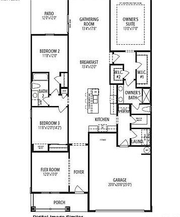 The Evelyn ranch offers a 3 bedroom with 2 bath open floorplan. As you enter the home you will find a large flex space that can fit your individual needs. The open kitchen with large island has granite countertops and looks out to your open breakfast room and gathering room with a corner fireplace. This is a true split floor plan with the master and master suite bathroom on one side and the two bedrooms that share the other full bath on the other side. You also can enter the home from the garage into the mud area where you have you large walk-in pantry, laundry room and sports locker.