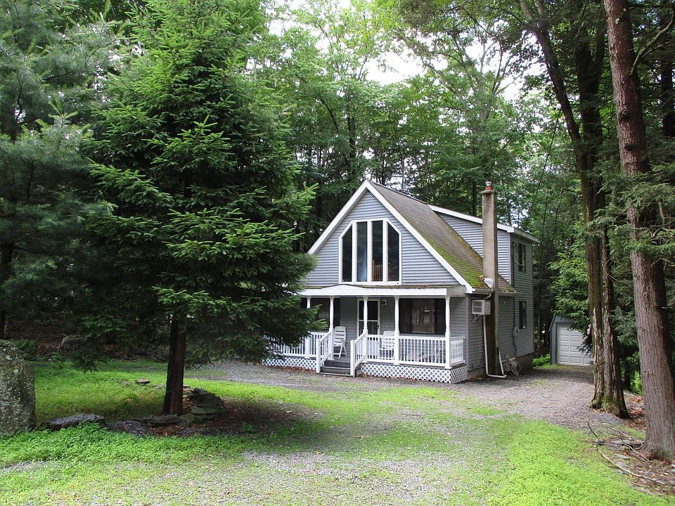 Chalet 2 Bedrooms 1.5 Baths Master on Main Floor, Large Loft, & Fully Enclosed Side Porch with Windows, Cathedral Ceiling, Garage for Toys, Cul de Sac Location! Horseshoe Driveway. This is a True Chalet with Vinyl Siding! Located in Wallenpaupack Lake Estates with all amenities included in Fees. Indoor Pool, 2 outdoor Pools, 2 small boat lakes & access to Lake Wallenpaupack which has 5700 acres of water boating!, Beds Description: Primary1st, Beds Description: 1 BED 2nd, Baths: 1 Bath Level 1, Baths: 1 Bath Level 2, Eating Area: Dining Area, Sewer: WS Comm Central