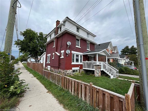 Great investment opportunity or ideal for first time buyers to live in one unit and rent out the rest. Centrally located all brick triplex with detached single garage for storage, and multiple driveways for parking. Natural gas forced air heat in 2 units and gas fireplace in the 3rd. each unit has separate hydro meters and shared coin operated laundry. 2 units are very spacious with hardwood floors in living/dining rooms, all three units have full 4pce bathrooms with one having its own laundry hookups. Other notable features include covered front porch, fenced/landscaped back yard and metal roof.