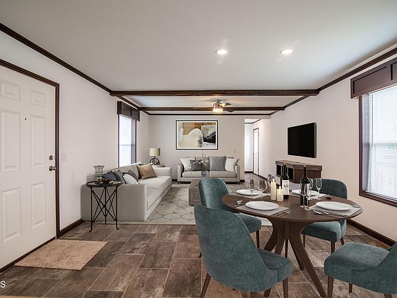 This brand-new 2025 3-bedroom, 1.75-bath manufactured home offers 1,170 square feet of modern comfort in Gateway Mobile Home Park in Mandan, North Dakota. Designed for convenience, this home features central AC and heat to keep you comfortable year-round. The spacious en suite bedroom includes a walk-in closet, providing plenty of storage. The open-concept kitchen comes equipped with stainless steel appliances, including a gas range, fridge, dishwasher, and microwave. Washer and dryer hook-ups are also included. A parking pad offers off-street parking for easy access.