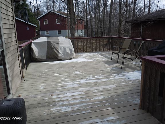 Enjoy life at the lake in this cozy Lake Wallenpaupack lake rights home in the amenity filled community of Wallenpaupack Lake Estates. Lots of natural light brings the outdoors in! Cozy up to the fire in the living room when it gets too cold to enjoy the expansive deck conveniently located just outside of the kitchen, where your family and friends can gather. Low maintenance with vinyl siding and wood interior. Golf carts are permitted and there's ample parking for it off of the paved driveway. There are two sheds to store all of your lake, pool, and garden accessories. This home is well maintained and is equipped with a security system. Newer windows and new roof in 2014., Beds Description: 1 BED 2nd, Beds Description: 2+Bed1st, Beds Description: 1 BED 2nd, Baths: 1 Bath Level 1, Baths: 1 Bath Level 2, Sewer: WS Comm Central
