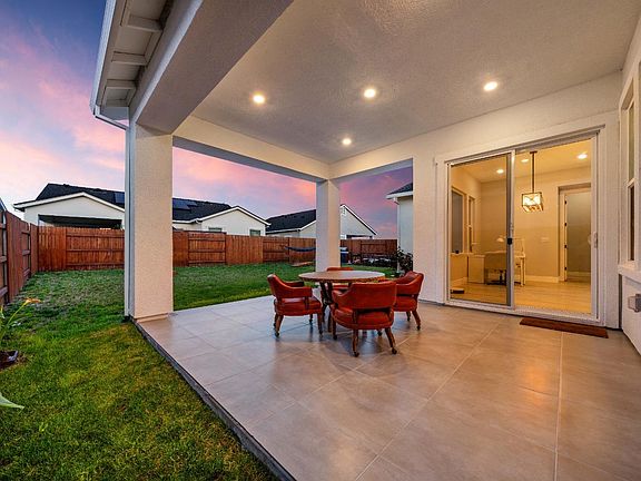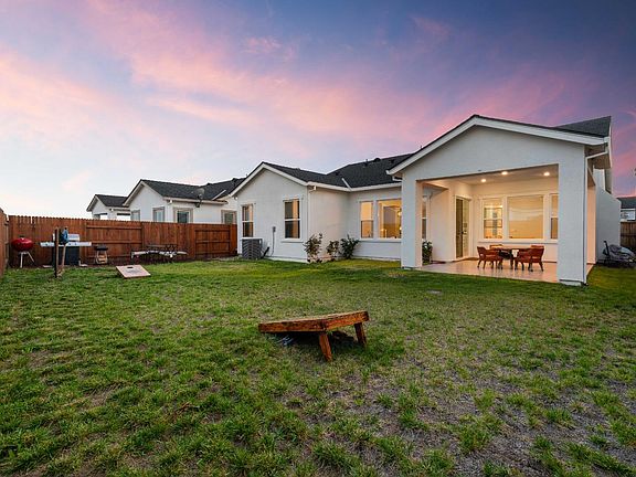 Welcome to this beautiful one-story community in West Roseville! This nearly new home offers 1,951 sqft with 3 spacious bedrooms featuring tall 10 ft ceilings, 2 full bathrooms, and a bright open-concept layout. The kitchen shines with gray shaker cabinets, granite counters, bronze fixtures, and flows seamlessly into the dining and living areas. Cool-toned LVP flooring complements the warm accents throughout, creating a perfect modern balance. The dining space opens to a covered patio with recessed lightingideal for relaxing or entertaining. The huge backyard offers endless possibilities for outdoor living, gardening, or creating your dream yard. The private primary suite is located at the back of the home and includes a ceiling fan, beautiful natural light, and a luxurious bath with dual vanities, granite and tile finishes, a curbless walk-in shower with multiple shower heads, and a soaking tub. The oversized walk-in closet offers great storage. Two additional bedrooms are positioned near the front of the home, offering privacy and flexibility. Located in an all single-story JMC community with City of Roseville utilities (some of the lowest in Placer County), plus owned solar and energy-efficient upgrades, this home blends comfort, style, and smart savings.