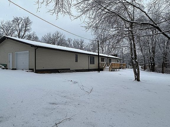 Beautiful spacious 2375 square foot Home on 2.08 acres. 3 bedrooms with huge walk in closets, 2 bath, huge family room with a fireplace, huge heated 900 square foot 3 car (plus) garage, roof is 4 years old, ac is 3 years old, new flooring throughout, fresh paint throughout inside and all outside trim has been repainted , all new kitchen appliances. 2 new decks out back. Two out buildings. Prime location just inside city limits, Beautiful wooded setting that faces 80 plus wooded acres across the road. Plentiful wildlife including deer, turkey rabbits, squirrels, etc wondering right through the yard daily. $255,000, set up an appointment to see and make it your new home.