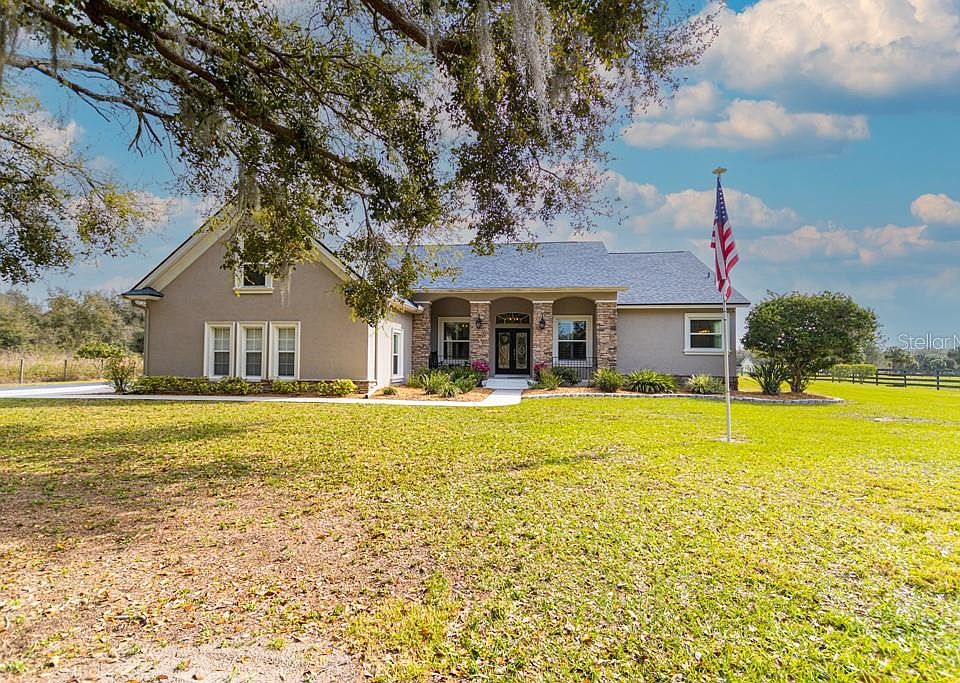 This stunning ready to move-in home on 6.5 acres is waiting just for you! Imagine relaxing in the screened-in pool and watching the sunset!! You can entertain guests and family as the kitchen overlooks the great room. This home has many upgrades from flooring, and cabinets just to name a few. The owner's suite is amazing along with the upgraded owner's bath! And if you love to have gatherings, there's plenty of parking space! Barn w/air conditioned tack or workout room, 3 Stalls, and chicken coop. 600' paved driveway, winds through old-growth oaks. New well, roof, and exterior paint. Solar Panels on barn so no electric bill. Add solar batteries and you're off the grid. 50x70 irrigated garden and irrigated fruit trees. Serenity at its best! 12-15 minutes from Fish Hawk. Schedule an appointment to tour this home for yourself! You will not be disappointed.