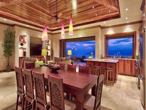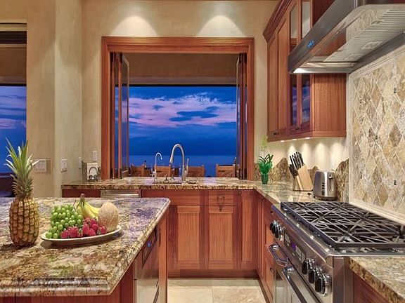 Perched at the top of Launiupoko, Lahainaâs most desirable neighborhood, at the end of a quiet cul-de-sac, 1008 Kai Hele Ku is a dream home in a dream setting. This inviting four-bedroom home is oriented to take in the views of the outer islands of Lanaâi and Kahoâolawe from its lofty position. The entire property provides a front-row seat to the most dramatic sunsets on earth! Arriving at the property, a driveway can accommodate several vehicles, while a three-car garage provides secure storage. Opening the double entry doors, one spies the outer islands floating on the horizon through a wall of glass pocket doors. Retract the pocket doors, and the magic of the home unfolds; The living room is seamlessly connected to the lanai and pool area, creating a resort-style indoor-outdoor living experience. High-end wood finishes add dimension and a stately Hawaiian feel. Outside, the lanai offers a sizeable shaded area, while the infinity-edge pool and jetted spa invite relaxation. A shallow ledge in the pool is designed for lounging directly in the refreshing waters. The kitchen area has a massive center island, and windows that open to the lanai area, allowing the chef to dialogue with guests. The yard is beautifully landscaped with beds of colorful flowers and palms. Above and behind the home, a path leads up to a manicured, secluded upper lawn that is perfect for morning yoga or an afternoon siesta under the swaying palms. Enjoy secluded hikes in the West Maui mountains, which are directly accessible from the property. Each of the four spacious master suites are ocean-facing, individually climate controlled, equipped with a private en-suite bath with large shower and bathtub, and a spacious walk-in closet. All four suites offer access to the outdoor living space via separate lanai sitting areas. The home also boasts a family/media room with a kitchenette and the ability to work from home in the private office, which features separate climate control, a large built-in granite workspace, and a computer and printer.