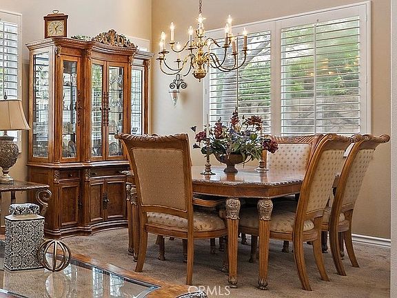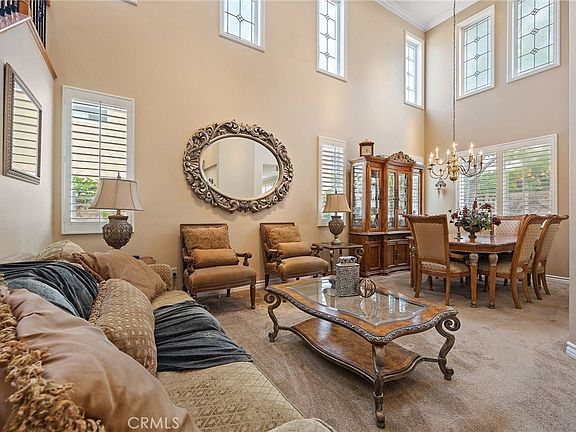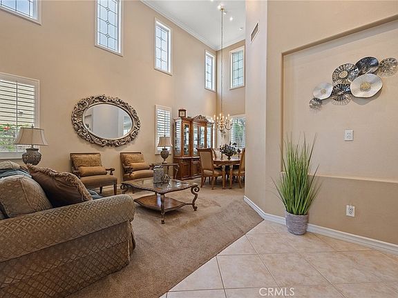 Spacious 4 bedroom home + Loft has a downstairs bedroom, full bathroom, and a 3 car garage. Located in the prestigious community of Alta Vista South. Enter into this luxurious home through the Diamond cut, beveled glass, double doors, into a grand foyer that opens to the formal living and dining room, featuring two story ceilings. The lower floor has no interior steps and the downstairs bedroom and bath are tucked privately away from the living areas. This home is believed to be the former model, with upgrades galore, including; diamond cut beveled glass windows, crown molding, recessed lights, ceiling fans, speakers, plantation shutters, newer carpet, custom tile, upgraded wood cabinets throughout. The spacious kitchen is open to the family room and features; granite counters, a center island with breakfast bar, a bay window, stainless steel appliances; with a double oven, gas range, new microwave and dishwasher. The spacious family room overlooks the backyard and has a custom granite fireplace and hearth. The staircase features a beautiful rod iron banister and the second floor has a loft that could easily be converted to a 5th bedroom. The luxurious master overlooks the backyard and has a raised ceiling with crown molding, and beveled double door entry, privacy shades, automatic blackout window shades, a ceiling fan, walk in closet, separate dual vanities, makeup vanity, sunken tub, separate shower, and privacy toilet. The laundry room is conveniently located upstairs and the two additional upstairs bedrooms are spacious and have mirrored closet doors. The upstairs guest bathroom has dual sinks, and a privacy door for the toilet and tub-shower combo. Exterior features include; dual paned windows, concrete tile roof, block wall fencing, custom stamped concrete driveway, a new 6 person outdoor jetted spa, that stays with the home, room for entertaining in the backyard, that comes complete with custom stone hardscape, and lush foliage. Refrigerator and kitchen appliances are included, and a newer hot water heater. This home has a very low HOA at $46 per month, and no Mello Roos. Privately tucked between mature trees, located on a quiet street, and minutes from; parks, golf course, shops, dining, freeways and universities, this fully upgraded home won’t be available for long.