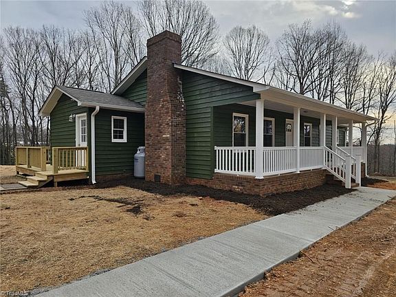 Charming 4-Bedroom Home on 3 Acres in a Peaceful Setting. Nestled on a serene 2-acre lot, this beautiful home offers the perfect blend of comfort and style. Featuring 4 spacious bedrooms and 2 full bathrooms, with an open floor plan, stunning granite countertops, durable LVP flooring, and plenty of natural light. Cozy up by the gorgeous stone gas log fireplace or enjoy mornings on the lovely rocking chair front porch. The spacious back deck overlooks the private backyard, perfect for relaxing or entertaining. This home also features a brand-new roof and heat pump, ensuring efficiency and peace of mind. A full basement provides endless possibilities for storage or a workshop. Don't miss this move-in ready retreat! Option to purchase 2 of the 3 acres with home for 379,000