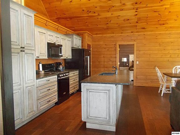 LOCATION! LOCATION! Over 180 degree views of The Great Smoky Mountains National Park.Gorgeous log cabin in sought after Black Bear Falls. Walk in the main level to the great room and take in those views while you lounge by the gas fireplace. Great room, kitchen, and dining area make up the center of the cabin on this level with a large Master ensuite off each side. Lower level houses the game room with gas fireplace and 2 additional master ensuite off each side of it. All four bedrooms have their own access directly to to the deck. Decks on each level to enjoy nature with spectacular mountain views. Lower level deck is where you find the Hot Tub to soak away those aches & pains from hiking or any of the other many activities the area offers. Cabin has been the sellers primary residence for the past 4 years. When purchased owner installed new appliances & all new flooring throughout the cabin. No carpet on the main level. Newer carpet in both of the lower level bedroom suites. New kitchen cabinets & textured granite countertops. Gas range and trash compactor too. Cabin is newly furnished awaiting new owners decorative touches. Rental potential in the 70's. Exterior stained since purchased. HOA fee is quarterly. Black Bear Falls offers a clubhouse & resort swimming pool. Equal housing opportunity. As with all Real Estate transactions, Buyer(s) should verify all information independently including HOA info. Information obtained from Tax records & Sellers and not verified by Listing Agent/Co. Buyers should have a survey, buy title insurance, and verify all information. Neither Seller nor listing agent make any guaranties or warranties.