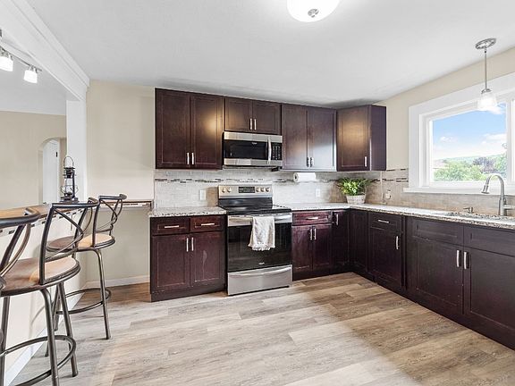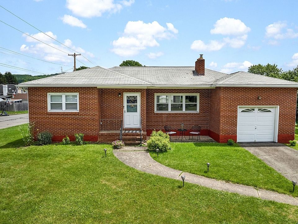 Welcome to this charming brick ranch-style home that has been thoughtfully designed for comfortable living. Boasting three bedrooms, one of which has been ingeniously converted from the original dining area, this property now offers the convenience of a three-bedroom layout. The remodeled kitchen features an inviting eat-at bar, adding a touch of versatility to the room. Additionally, the basement presents a blank canvas for expansion, offering endless possibilities to create additional living space tailored to your preferences. Situated on a spacious corner lot, the property provides ample outdoor space, complemented by a covered patio that invites relaxation and outdoor gatherings. The newer kitchen enhances the home's appeal, blending modernity with the timeless charm of a ranch-style residence. Experience warmth and coziness with two wood fireplaces. Enjoy the convenience of a one-car garage and extra parking with added driveway spaces. Newer Furnace and HWH