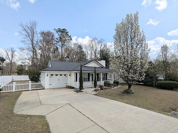 Coming home to this charming little bungalow in the heart of Moncks Corner is sure to put a smile to your face! It's easy to tell that this home has been loved and well cared for. Note the beautiful and long lasting metal roof, Trane HVAC, and low maintenance siding. Inside, you'll find that the small footprint of this 3 bedroom 2 bath home feels a bit bigger than expected thanks to vaulted ceilings and great natural light coming through the gorgeous plantation style shutters. Wood floors throughout the main living area keep the floorplan flowing and are another handsome upgrade. The interior has also been freshly painted. Back outside, you'll notice the picket fence fronting either side of the house tying into the privacy fence around the rest of the yard. And what a great yard it is,its surprisingly large for a home of this size and complete with its own little private patio. It would make a great spot for entertaining or simply relaxing at the end of the day. This is a must see property in a great location!