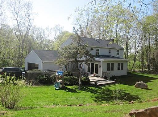 Room for everyone and ideal for entertaining. This lovely home has spacious rooms with the updated kitchen opening to 13x22 family room that has sliding doors that lead to large deck overlooking private and picturesque back yard with natural landscaping and abutting conservation land. The spacious living room with fireplace has been recently painted and works nicely as an "adult" space. Large, beautiful kitchen with dining area. 1st floor laundry and pantry closet for convenience. The dining room is currently used as an office and there is a half bath off of main entry hall, ideal for in-home business. Four large bedrooms on second floor with great closet space, Master has walk-in closet and private bath. Newer septic system and the roof was re-shingled in 2014. Smart programmable thermostats. This home offers space, beauty and updates that will allow for years of enjoyment. Call now!