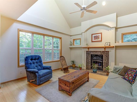 Very private and beautifully wooded setting for this lovely, high-end home on 1.3 acres. Contemporary architecture gives this 3BR/2.5BA home plenty of visual interest. High quality materials and high end features include: Vaulted ceilings, beautiful custom kitchen with granite counters, new downdraft range, tile and wood flooring, and many skylights to bring in natural light. Bathroom granite counter-tops coordinate with the kitchen. Office/Den with glass doors that give you a view of the landscaped yard and patio. Enjoy idyllic outdoor living on the spacious decks and peek-a-boo view of Mount Shasta, and listen to the gurgling of the seasonal creek as you fall asleep at night. Delightful landscaping with native trees, shrubs and a variety of easy to maintain perennials. Exterior was painted in 2019. Bock central and wood-stove heat. Laundry room with utility sink. Approximately 1/2 mile from downtown Mt Shasta City.