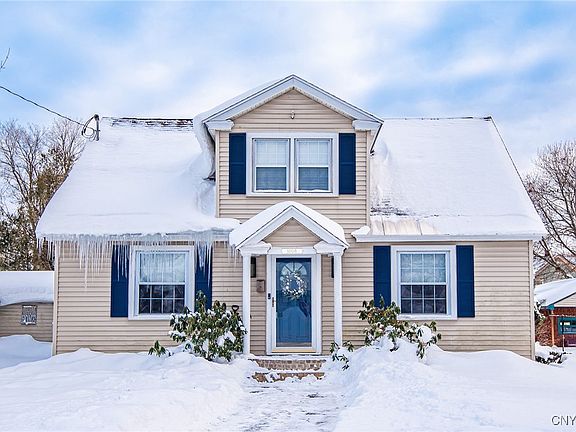 Charming in the front, but the party's out back! This seemingly modest Cape packs a punch with a whopping 2500sf of living space! Spacious kitchen with dining area, loads of cabinet & counter space, and updated appliances! The expansive family room addition features BRAND NEW flooring, wood burning fireplace, tons of natural light and a large rear window overlooking the pool. An adjacent room with sliding doors to the backyard has functioned as a sunroom, den, office, and is currently being utilized as a guest bedroom, but the possibilities are limitless. A front den makes a cozy TV room or office, or could even be enclosed to serve as a main level bedroom! The adjacent front room is currently a play zone for the kiddo, but would also be a great place for the piano & a couple of comfy chairs. Full main level bathroom with tub! Upstairs, you will find three good size bedrooms, one with an attached bath and walk in closet. The backyard is a summer oasis! NEW pool cover! The outdoor string lights will stay and the $1400 automatic pool vac can stay will a suitable offer. Standard Insulation just insulated the entire house top to bottom, side to side this January! NEW chimney cap. Water tank 2018. New carpet in one bedroom. High efficiency forced air gas furnace with central A/C! Updated windows! Hardwood floors! QUICK COMMUTE to Griffiss, downtown, Rt 49 & 365! This is a MUST SEE!