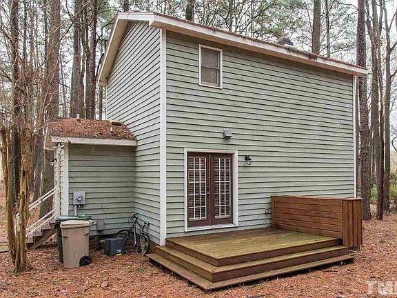 GREAT Garner location just minutes to downtown Raleigh. Private 2 bedroom retreat on .66 acre wooded lot. Beautiful laminate floors in LR and DR. Wood burning fireplace in living room. Separate dining room opens to the deck overlooking private wooded lot. Outside storage room. All appliances convey. This one won't last long!