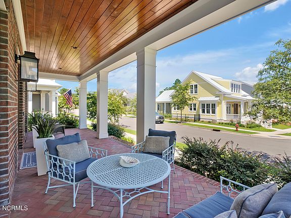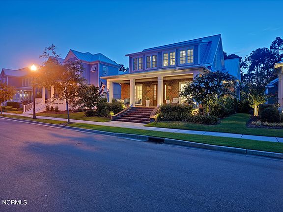 This captivating home is a true masterpiece in the picturesque community of Autumn Hall. Complete with a large front porch adorned with elegant gas lanterns and brick pavers. From the moment you walk through the door you will be stunned by the classic beauty, the timeless elegance of hardwood floors and handcrafted molding throughout the home. Prepare to be enchanted as you step into this beautifully designed foyer. Adjacent to the foyer is an office with pocket glass sliding doors for privacy. On the other side of the foyer you have a formal dining room with exquisite details. The meticulously designed wainscoting and molding extend beyond the staircase enhancing the entire home's interior. From the office to dining room and beyond every room exudes a sense of grace and refinement. The chef's kitchen is the hub for entertaining, featuring a commercial refrigerator, reverse osmosis filtration system, a generous quartz and wood center island, and ample storage for all your cooking needs. The amazing butler's pantry offers an ice maker, beverage fridge, coffee garage, built in wine rack, floating shelves and a walk in pantry makes this the perfect area for meal prep and organization. The open layout of the family room features a large gas fireplace flanked by custom built in cabinets and shelves. Step through the sliding glass doors to the spacious screened in porch seamlessly extending your living space to the outdoors with landscape lighting. Experience tranquility in your beautifully appointed primary suite including two spacious walk in closets, spa style bath with separate soaking tub and large walk in shower. The bath includes double vanity, beautiful inlay tile and built in wood shelves. Upstairs you will find two en-suites,den and cedar closet. Laundry room and large drop zone leads to a large 4th en-suite with private staircase that is above the two car garage with epoxy flooring. Close proximity to restaurants, city trails, Mayfaire, and Wrightsville Beach!