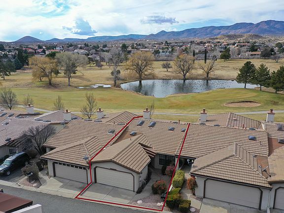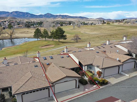 Views! This may be the best townhome lot in the Prescott Country Club. Sitting on the 18th fairway with views of the 10th and 13th fairways, Bradshaw Mountains and a peaceful pond. The interior offers an ideal split bedroom floorplan, both bedrooms have their own baths. The great room is centered around a cozy gas fireplace and large sliding door to capture the gorgeous views. The kitchen is open to a formal dining area, offers a breakfast counter and separate eat-in area. Enjoy your morning coffee and the peaceful surroundings on your covered patio or out on the extended open air patio.