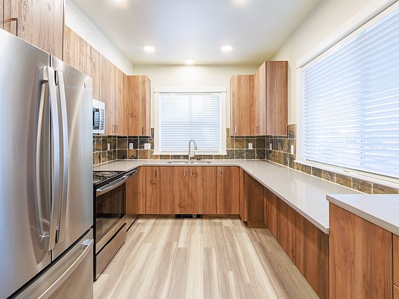 This convenient, ground-floor apartment home has 2 bedrooms and 2 full bathrooms, and it's just a few years old! The front door is just off the sidewalk in a quiet neighborhood on 23rd St. We installed all the same appliances, cabinets, and beautiful finishes that we use in our larger luxury houses. You'll have a washer/dryer in your apartment, full-size stainless kitchen appliances, and even an included 55" TV. There's a large, locking storage closet next to the patio. You'll even have a secure package delivery box, so your online orders will always be safe from porch pirates. This home is available on January 11th, and we're offering a FLEXIBLE lease term. Just let us know how long you're planning to stay! This home is PET-FRIENDLY! For each pet, there is a $20 monthly fee and a one-time $225 refundable deposit. We are a small company, and we work hard to give personalized service! Sarah will be taking care of all your needs from your first showing through your final move-out. Call or text us now to schedule your live or virtual showing! 9/5/25 to 9/5/26; Residents responsible for all utilities; Pets allowed with fee and deposit