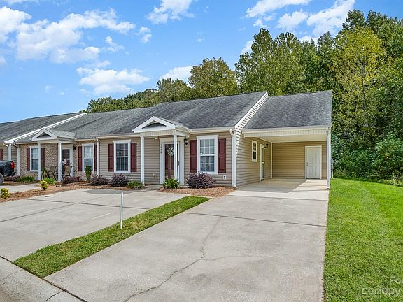 Fantastic opportunity to own a RANCH style END UNIT townhome in Cramerton Oaks w/ a rare 3rd bedroom & is 1 of only 10 units w/ a carport! The large living rm has a cathdral ceiling w/ fan, new carpet & french dr to the patio w/ retractable awning & privacy fencing. The all white kitchen features large breakfast bar, new LVP flooring, lots of counterspace & cabinets, refrigerator remains & opens to nice dining area w/ cathedral ceiling. You'll love the large primary suite w/ fresh paint, new carpet, walk-in closet & full bath w/ new LVP flooring, spacious vanity/kneehole & tub/shower combo. In addition, there are 2 more bedrooms, both w/ fresh paint, new carpet & access to the full hall bath. Enjoy fresh paint, new flooring, extra space of an end unit, more green space, storage closet, carport w/ side entrace PLUS an extra parking pad at the front entry! HOA covers lawn maintenance, water, sewer & trash. Close to 74, I85, Shopping, Greenways, Trails, Parks, River, Rec Center & more!
