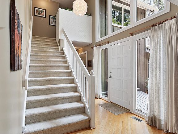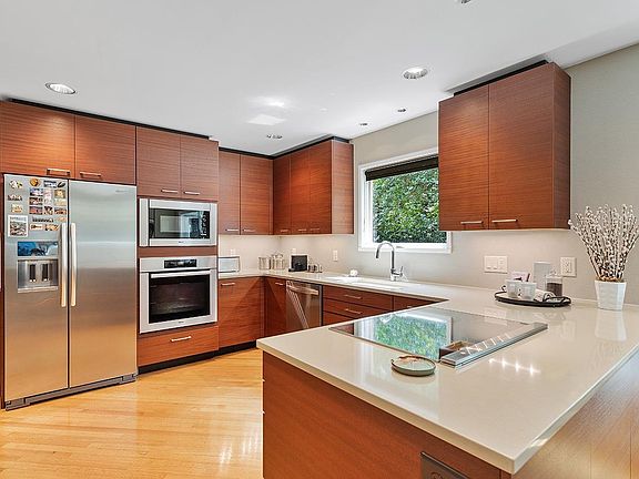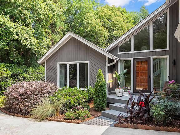 Unique contemporary tucked away on almost an acre lot in highly desirable N Raleigh neighborhood! Exquisite kitchen with top of the line Miele appliances, quartz counters, & custom cabinetry with book matched woodgrain! 1st floor primary suite boasts magazine worthy spa like retreat en-suite with walk in shower, quartz counters, custom floating vanity, and built in planters! Dual WIC! 2nd primary suite upstairs! Lush private oasis for gardeners paradise! Plenty of space for outdoor living! Fenced yard!