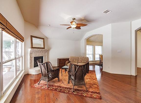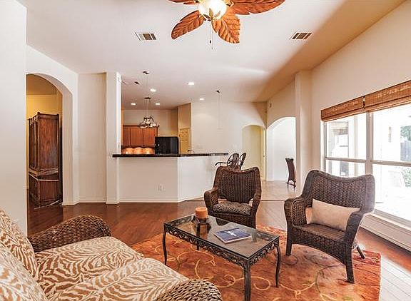 3 bedroom, 2 bath, 2 dining areas, large living room with wood burning fireplace and office (4th bedroom). Granite tile counters, center island and tile kitchen floors. Master has separate shower / tub and large closet. Large covered patio and privacy fenced back yard. Two car garage. Proximity to employment centers, schools, shopping and entertainment make this a very desirable location. Park and amenities not HOA, operated by MUD