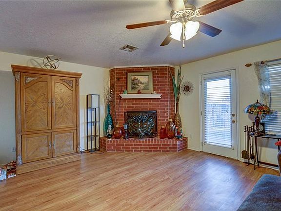 Move-in Ready! Awesome home centrally located in Moore. Close to EVERYTHING! Large living area with corner brick fireplace. Kitchen is open to living area with breakfast bar. Spacious master with Jacuzzi tub, separate shower and 2 walk-in closets. Energy efficient. Must see!
