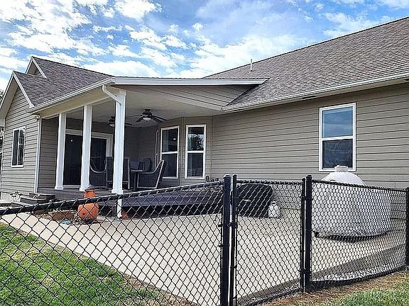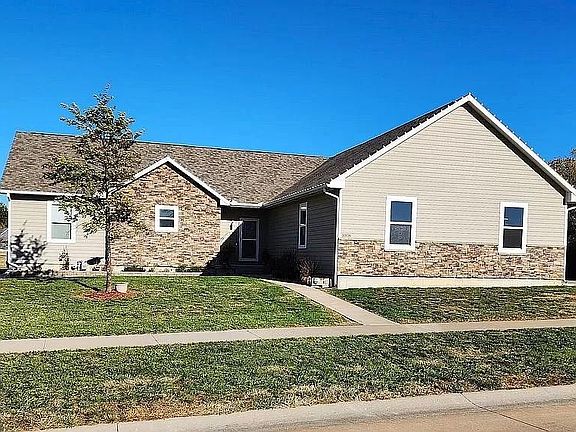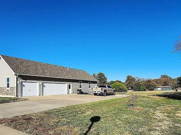 This beautiful home is sitting on a large lot, in one of the newest additions in town. This 5BR, 3 bath ranch is close enough to walk to the elementary school, hospital, or enjoy walking on the paved walking/bike path. An open floor plan on the main level is great for entertaining. Includes new slate stainless dishwasher, microwave and gas stove with double oven and air fryer function plus a side by side refrigerator. This home has 9 foot ceilings throughout, a large master bedroom with large walk in closet and en-suite bathroom with linen closet. There are two additional nice sized bedrooms on the main floor with walk in closets. The finished basement includes a family room, 2 bedrooms , a bathroom and a tornado safe room. The unfinished area in the basement has ample storage space and contains another e-gress window for future living space to be added. A large yard, fenced in with a 30 foot above ground, salt water, heated pool with deck. An oversized three car attached garage 27' by 35'. The lot has enough space to expand with a shop building, and there is an option to purchase the lot behind house (.71 acre) and on the North (.5 acre)