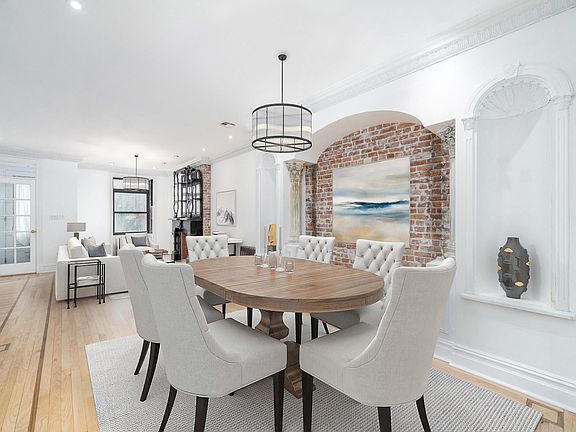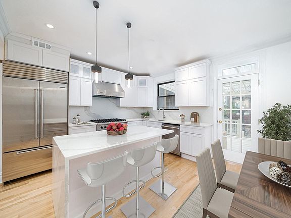 A beautiful listing. Sophisticated One Family on Uptown Park Ave with 4 levels of almost 2700sqft of living space and a large private backyard. Deep & modern 4br/3b with many original details and unique features. Finished basement (dug out) features a separate entrance, full bathroom, laundry room, real hardwood radiated floors and kitchenette w/ ss microwave and double drawer fridge. Perfect for movie nights or entertaining. 1st floor features an extensive open layout, Living Room, Dining Room and Eat in Kitchen. Stair’s setback for wider layout and feels much bigger than sqft. Chef’s Kitchen with New Subzero fridge, 36”Viking SS Appliances, 6 burner stove, waterfall center island/breakfast bar with Quartz countertops and backsplash. High ceilings and new finished hardwood floors throughout. 1st floor also features Dining room with exposed brick, decorative columns, and a fireplace. 2nd & 3rd floors feature 2 large equal size bedrooms and full bath on each floor. Top floor also features 2 skylights and a laundry hookup closet. 2nd fl bath features a beautiful Gothic architectural style-stained glass window. This Elegant home also features Two AC/heat systems; Central forced air and heat as well as radiator heat throughout. The 4 fireplaces are functionally re-lined. The Backyard features a large, covered deck and large landscaped backyard that is very Arboretum-like. Yard gets a lot of natural sunlight and organically lush green foliage for a quiet peaceful retreat from the bustling city while still being near all the amenities that Hoboken has to offer.