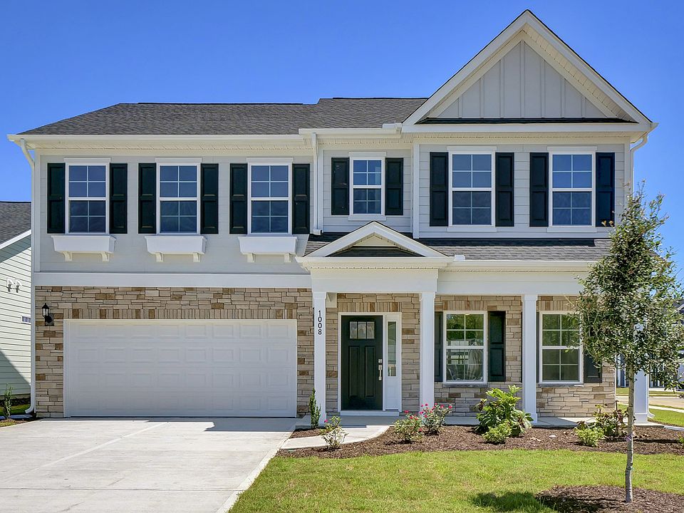 The Langford floor plan is a two-story home with four bedrooms, three bathrooms, and a loft. The first floor features a guest suite with access to a full bath and a pet pad for your furry friends. The great room, complete with a fireplace, overlooks the kitchen, spacious eat-in area, and sunroom. A patio right off the sunroom is ideal for outdoor relaxing and entertaining. The large primary suite includes a sitting area, a walk-in tile shower, linen closets, a water closet, and a spacious walk-in closet. Two secondary bedrooms with walk-in closets, a loft, a full bath with double vanities, and a laundry room round out the upstairs. A tankless gas hot water heater is included with this home. This master-planned community will offer amenities such as a swimming pool, a covered outdoor pavilion, walking paths, and lush landscaping.
