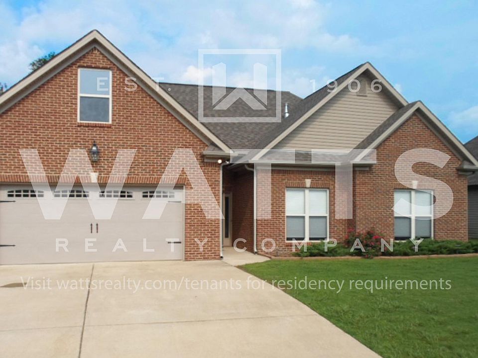This charming 4 bedroom, 2 bath home has an open floor plan which features vaulted ceiling in great room and a spacious Head-of-Household suite and private HoH bath with garden tub, double vanities and separate shower. An upstairs bonus room can serve as the 4th bedroom, office or media room, and 2 car garage. Located near American Village and is minutes from to I-65, the University of Montevallo and great shopping areas. We request to anyone interested in a property to view it before turning in an application, as the application fee is non refundable. This property has an automated lockbox so you can view the property at your convenience 7 days a week from 8:00am to 7:00pm . Subject to prior sale or lease, change in price, or withdrawal from market without notice. Rental availability may change hourly, and there is no guarantee that rental availability listed will be the same when you contact our office. The information contained herein from sources deemed reliable but no warranty or representation is made to the accuracy thereof. Watts Realty Co., Inc. Copyright 2022. All rights reserved. 12 month lease term. $250 pet fee + additional $25/mo. (must meet certain breed, age, and size requirements). Tenant is responsible for all utilities (power & water). Tenant is responsible for landscaping & lawn care maintenance. No Smoking.