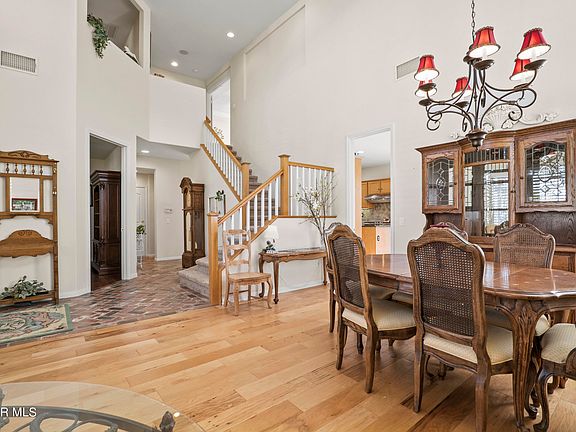 This home has everything you are looking for including an oversized lot with pool, spa & RV access. When you arrive you will notice the lovely porch where you can enjoy evening sunsets. As you enter through the double doors of this highly upgraded home you will notice the brick tile floor with herringbone design. Living room and Dining room offer hardwood flooring, plantation shutters, dual paned windows & cathedral ceilings. Island kitchen with granite countertops, KitchenAid stainless steel appliances, decorative chair rail and upgraded faucet with matching finishes which opens to the warm and inviting family room with framed windows and gas fireplace, decorative gas log & widened mantle. Downstairs office with wood flooring and plantations shutters could also be used as the fourth bedroom. Downstairs bathroom completes the first floor and offers upgraded light fixtures, mirror, faucets plus granite countertops. Upstairs has 3 bedrooms and additional area with cabinets that could be used as a computer space. Spacious master bedroom features walk-in closet with Elfa closet organizer. Master bath has a wonderful spa tub, porcelain floor tile, upgraded light fixtures, commode and faucets plus plantation shutters. The first secondary bedroom also has the Elfa closet organizer and pergo flooring. Additional bedroom with carpet and decorative molding. Jack & Jill bathroom serves both secondary bedrooms and has an upgraded shower enclosure & ceiling heater. As beautiful as this home is, the outdoor area is where you will want to be! Backyard has a large patio area to enjoy relaxation time. Beautiful refinished pool and spa highlight this home with LED lighting and in-pool umbrella stand. The yard also offers fruit trees including lemon, lime and apricot. The side yard can be paved to accommodate a boat, trailer and RV. This feature along with the 3 car tandem garage gives plenty of room for vehicles, toys and more! Please do not miss your opportunity to view this special home and property.