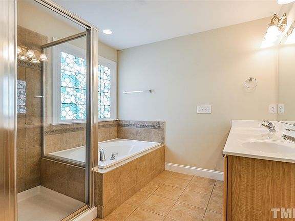 This 2004 Knightdale two story home offers vaulted ceilings, a fireplace, a covered deck, and a two-car garage. Upgraded features include fresh interior paint and new carpet in select rooms.