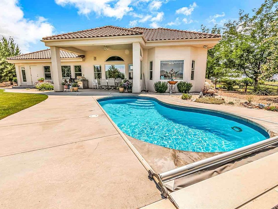 What and incredible property with elevated views of the Monument and Bookcliffs with one owner home on 2 acres. Details were not spared and you will enjoy the salt water pool and patio area and the open concept design with Cherry kitchen, granite, island with gas stove top and wine chiller, built-in convection ovens and more! Formal dining and breakfast nook. Large master suite with views and 5 piece bath, separate pool shower and dressing bathroom. Geothermal heating and cooling. Over 1600 Sq Ft garage with RV bay and 5+ car capacity. The yards combine zero scape and prestine landscaping and there is so much more! Call today for your private showing!
