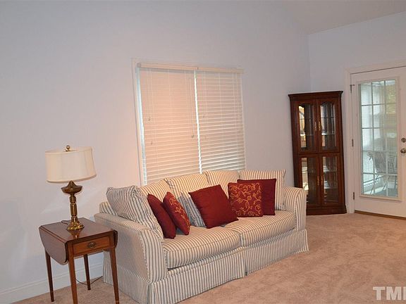 Country Club Heights/Townes , One level living , 2 main floor bedrooms & 2 first floor baths, 3rd bedroom, full bath in loft. Cathedral ceiling, open floor plan, large kitchen,pantry, lots of cabinets, sep. dining,hardwoods, Marble fireplace, new carpet, sunroom/patio-porch. Mature landscaping attracts butterflies & birds. All appliances convey. Lots of greenspace, walkable pet friendly community. Umstead Pines Golf & Swim nearby for fee/membership. Convenient to Duke & VA.