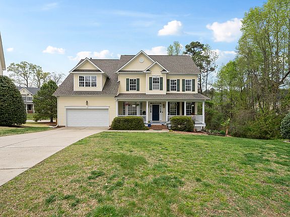 Welcome to your custom-built dream home nestled in a peaceful cul-de-sac within the conveniently located Haddon Hall community. Enjoy the rocking chair front porch, deck, large lot and fenced backyard. 5BR home + Bonus Rm + Rec Rm w/ full BA + abundance of storage. As you step inside, you'll be greeted by high ceilings, hardwood floors, and natural light flooding the open floor plan. New carpet and paint throughout 2024. Office, formal DR, first floor guest suite w/ full BA, family room w/ surround sound and fireplace. Chef's kitchen w/ S-S appl, new microwave and gas range, large island, granite counters, and a stylish tile backsplash. Two staircases leading to 2nd level. Outside, the exterior has been meticulously maintained. Exterior painted 2023, fence/porch/deck painted 2024. Enjoy access to community amenities such as a pool, playground, tennis facilities. Experience living at its finest in this meticulously crafted home in Apex.
