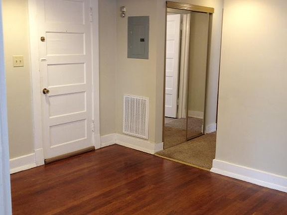 $695 a month, 1 bedroom, 1 bathroom apartment with outdoor balcony! This vintage style apartment is located on the top floor, rear side of the building with hardwood floors, ceiling fans, central heat & AC, an updated kitchen, and private rear entrance. An outdoor balcony gives you a private outdoor space to enjoy. Located in a secure building with coin laundy room on 1st floor and a parking lot. Customer pays for electric service. Landlord provides water/sewer, and trash services. 1 year lease required. Up to 2 cats are okay with monthly pet deposit, no dogs please! Non-smoking building.