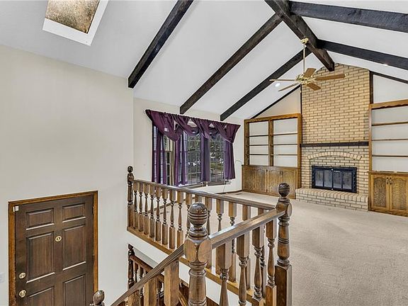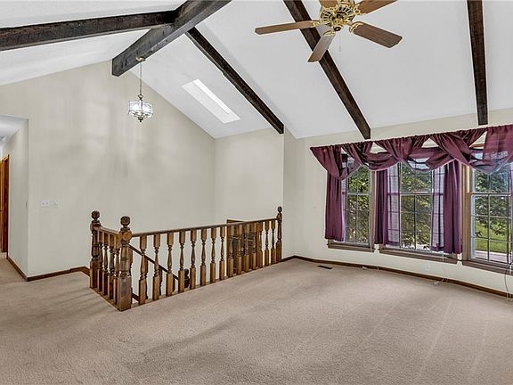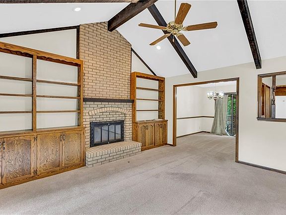 Great opportunity in Olathe! This spacious three bedroom, three bath home has so much to offer! Open and spacious main living space has fireplace, vaulted ceiling, ceiling fan, built in shelves, natural wood beams and newer carpet! Roof is only a year old, upstairs carpeting and interior paint redone three years ago. Kitchen has plenty of counter space as well as wood cabinets, new disposal and the refrigerator stays! Patio door off dining gives access to large deck and spacious yard! Lower level has second living space complete with second fireplace, room for an office or non-conforming bedroom complete with built in glass cases and it's own 1/2 bath! Laundry and access to large two car garage with ample work space are also on the lower level. Back yard is also accessible from walk door in garage. Close to highways, shopping and dining!