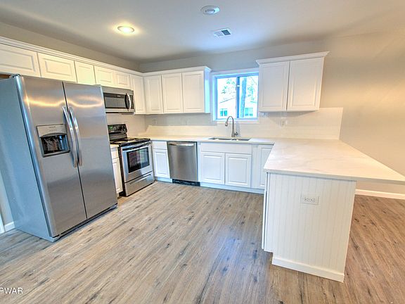 New Construction! Beautiful 4 Bedroom, 3 Bath Chalet w/a 1-car garage & seasonal Lake Wallenpaupack views! Located in Wallenpaupack Lake Estates this home features upgrades throughout starting w/the kitchen - SS appliances, granite counter tops, under mount sink & wood cabinets w/soft close. This home includes an open floor plan, vaulted pine ceilings in the LR & a stone veneer LP fireplace - perfect to cozy up to on a cool night. The master suite is located on 1st w/a walk-in shower & double vanity. 2 bedrooms & full bath on the 2nd floor and a finished lower level w/living room, bedroom, full bath & laundry. The flooring includes tile in bathrooms, carpet in bedrooms/living room & luxury vinyl plank in the kitchen, dining, family & laundry room. Central AC, a large deck & 4-season room