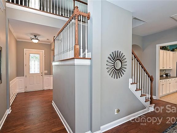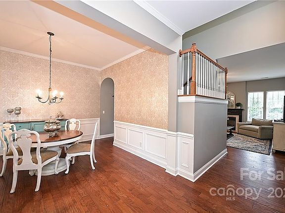 Located within a short walk to the community pool and minutes to downtown Matthews you will find this 4 bedroom, 3 bath located in beautiful Callonwood! Features include a bedroom and full bath on the main level, engineered wood floors in most of main level living areas including the formal dining room, spacious kitchen with 42 inch white cabinetry, Corian counters, tile back splash and stainless appliances with the refrigerator included, a spacious morning room perfect for casual dining and a family room with gas fireplace. The upper level features the primary suite with private bath that includes a garden tub, separate shower, dual vanity and large walk in closet, a huge loft, 2 generous size secondary bedrooms and the laundry room with washer/dryer included. The exterior features a 3 car garage, rocking chair front porch and patio. Community features include pool, clubhouse, playground and tons of social activities throughout the year. 2-10 Home Warranty provided by seller.