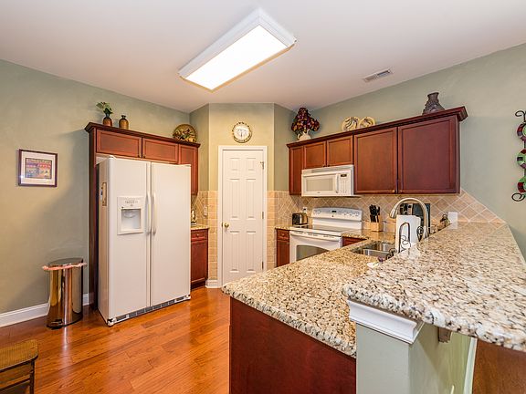 Original owners, well maintained, Master on Main. This 4 bed 3 full bath Custom home is looking for a new family to live, love & laugh in. Newer Stove & Dishwasher in kitchen along w/updated granite & tile back splash. Granite counter/bar top & dining area right off kitchen & leads to sunroom. Sunroom added & upstairs finished. Upstairs includes large bedroom, bonus room & flex room. Hardwoods throughout main & carpet in bedrooms. Laundry off garage w/lots of cabinets. Private wooded backyard.