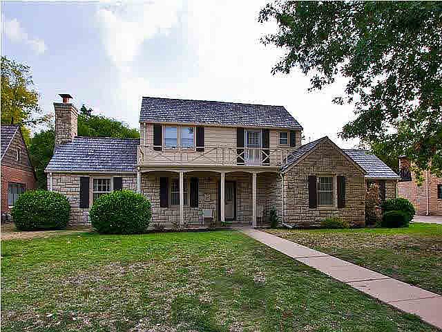 This limestone and shingle home will charm you with its covered front porch, spacious rooms and beautiful wood plank flooring. The living room features a fireplace flanked with shelving and has beamed wood ceiling. It opens to a formal dining room with two built-in corner cabinets. Upstairs is a bedroom, bath and a reading nook with balcony overlooking the river. There is also a bonus or storage room. The main floor family room has wood beams, a wood burning fireplace and sliding doors to a side patio. There is a mother-in-law or guest quarters off of the family room with separate exit and its own HVAC units. The two car carport has a storage area at the rear. This beautiful home has a freshly painted interior, new carpet in the family room and back bedroom, and is scheduled for a new roof on the carport and new guttering on the house. Don't miss this one!