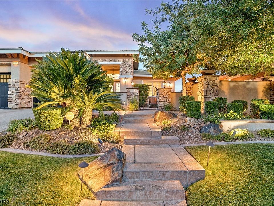 Welcome to this stunning 4 bedroom, 3.5 bathroom home in Summerlin. This property is located in the highly desirable Amber Hills subdivision. This beautiful recently remodeled home has modern finishes and luxurious upgrades. As you step inside, the spacious, open concept will welcome you in. The gourmet kitchen is a chef’s delight, boasting Quartz countertop, double ovens, custom cabinets, and Thermador appliances. It’s the perfect space for entertaining guests or enjoying family meals. Relax in the tranquil master bedroom and bathroom spa-like retreat! The walk-out basement includes a full kitchen, a large bonus room, a living room and 2 bedrooms, making it an ideal place for creating fun memories. The Outdoor living space with kitchen and fire pit are just as enticing as the resort style backyard with rock waterfall and slide. Essential amenities like a tankless water heater, water softener, custom smart insulated garage doors, and alarm with cameras are also included.