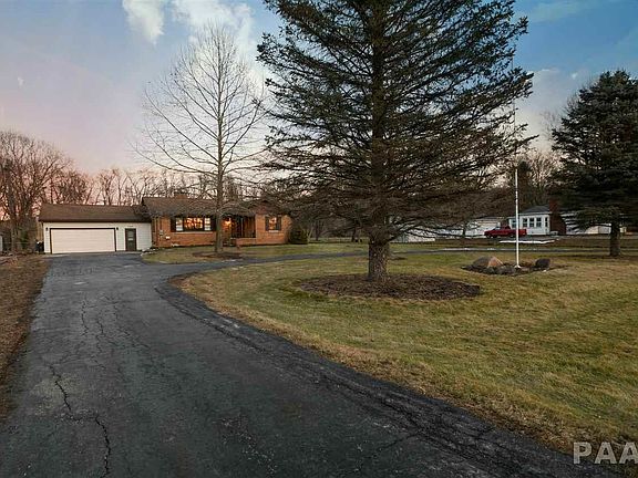This Beautiful updated 3-Bedroom 2 bath Ranch minutes from Peoria is a must see. Sitting on an Acre lot with a fenced in backyard, deck, and wooded backdrop makes this home feel like a Private Country Setting Complete with Mature Landscaping. The open Floor Plan come complete with new carpet, refinished original hardwood floors, completely remodeled kitchen, fresh paint throughout, and cozy fireplace. Lovely built in shelves and lots of storage make the interior of this home complete. The circle drive allows for easy access and plenty of parking in the drive or over-sized garage.
