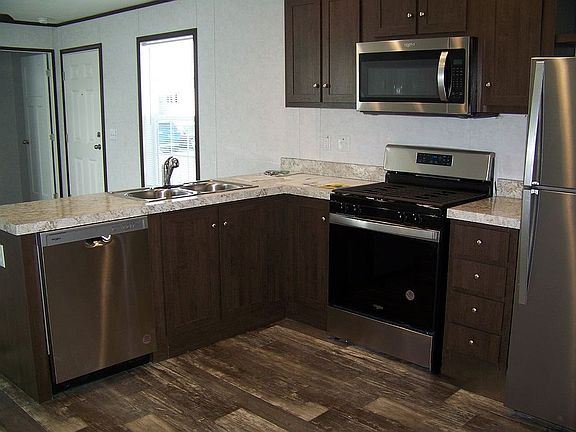 Beautiful NEW single family home nestled on the end of a quiet street away from the hustle and bustle. This two bedroom and bath home has stainless steel appliances (Dishwasher, oven, microwave and refrigerator) and a walk in shower. This is a MUST SEE! *Lot Rent is $906.05/month