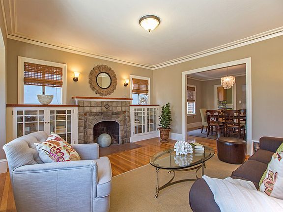 Charming Craftsman on the edge of the Gold Coast. This beautiful Craftsman, boasting vintage details as well as modern upgrades, is located on a quiet, friendly street with a classic layout perfect for entertaining. The bright, cheery front door leads you into the entry hall, with a coat closet, and then into the light and bright living room with detailed crown molding and picture rails as well as 6 light vintage wavy glass windows. Built in bookshelves with divided light glass french doors frame the fireplace with sconces and windows above the mantle. The crown molding and picture rails carry through into the formal dining room which also features a large built in with divided light glass doors that match with the living room built ins. Beyond the dining room is the fully renovated kitchen with granite countertops and stainless steel appliances. The cozy breakfast nook is surrounded by windows facing out to the yard; a wonderful spot to enjoy reading in the sunlight. The ktichen opens out to the backyard and deck with a built in bench for relaxing. The backyard has a reclaimed brick patio area for outdoor summer dining under the meyer lemon tree. The tall fences provide additional privacy as well as the decidious maple tree. Drought tolerant, native plants decorate both the front and back yards with drip line irrigation systems for easy maintenance. The lower level of the home features the laundry room, the garage, which was most recently used as a "bonus" room and still has the carpet installed - easy to tear out or keep if you plan to do the same. The basement is large, well lit and has built in storage, perfect to utilize as a workshop and/or storage room. Located within close proximity to all of Alameda's finest amenities: Washington and Franklin Parks, Crown Memorial Beach, Webster Street, Farmer's Market and South Shore Shopping Center. Close to the West End Ferry Terminal, the Transbay bus line and the Webster Tube.