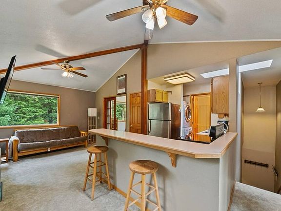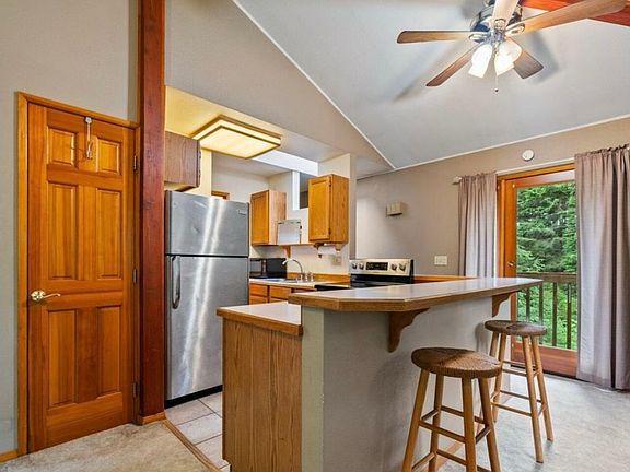 Escape to Girdwood and make this charming 1 bedroom, 1 bathroom unit your new home! Fully furnished for your convenience, this unit features a private porch offering serene forest views. Stay warm and dry with the added benefit of a garage, perfect for storing gear or parking your vehicle. Enjoy the inviting top living area with vaulted ceilings and abundant natural light, creating a cozy and airy atmosphere. Secluded towards the end of Timberline, but still close to all Girdwood amenities and outdoor activities. Available Today Call For Showing Pets on Approval Tenant Pays Utilities No Smoking or Vaping on Property