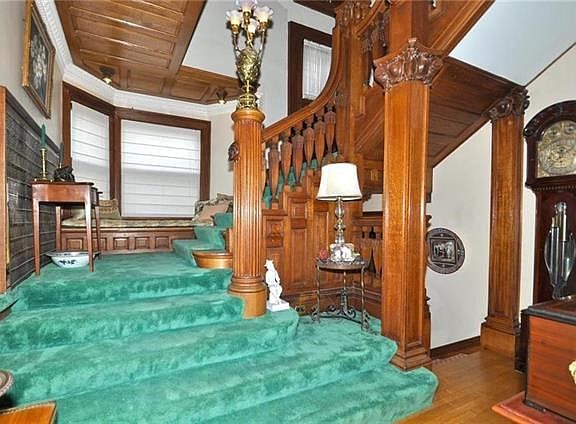 One of the most unique properties on the historical register in Roanoke. 3 story majestic, Stone Victorian Home on Valentine. Heavily wooded 5+ acres, could be separated. Newer 4 car garage with apartment PLUS huge carriage house. Drawing room, wood burning fireplaces, solarium, library, original hand-carved woodwork, elevator, quarry tile floor, pocket doors, built-ins, extensive mechanical renovation, copper plumbing throughout, extensive electrical, Highly efficient Pulse boiler heating system & SO much more. Largest plotted lot in Jackson Co. Once home for several of KC's most prominent citizens w/rich heritage. Appointed mahogany moldings, leaded glass doors and windows, Ball Room/Kids Play room, Newer 4 car garage architecturally matching w/limestone outer walls, EXTRAORDINARY Home!