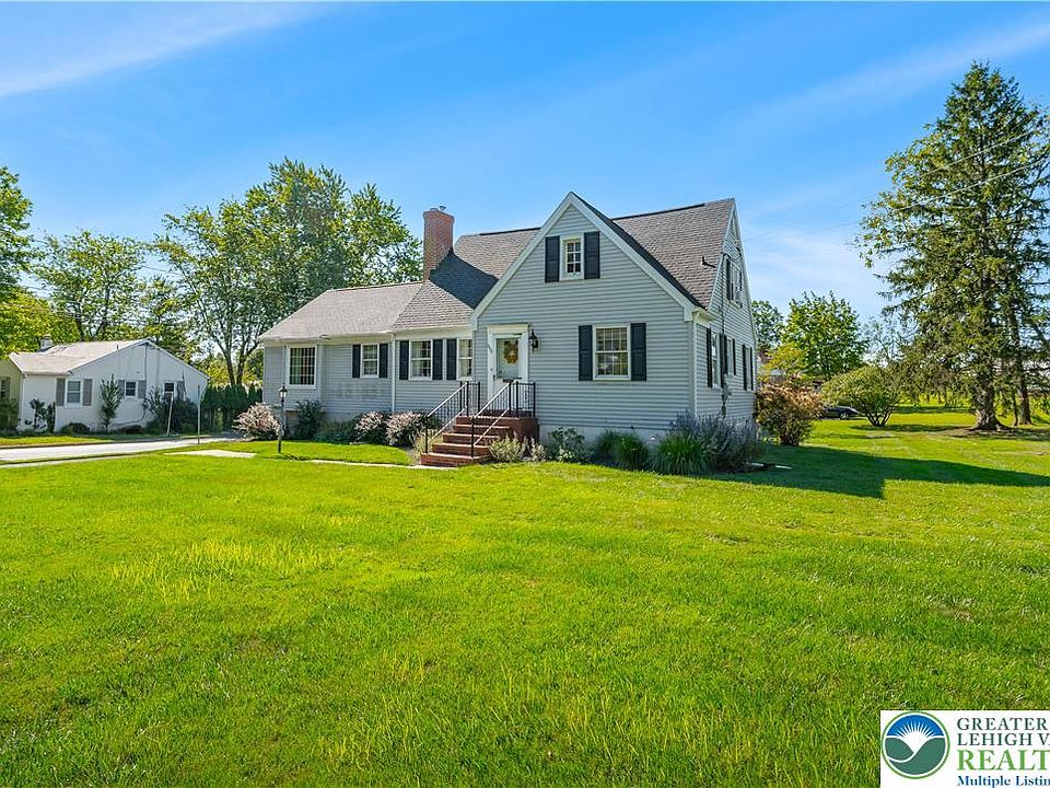 MULTIPLE OFFERS RECEIVED. HIGHEST & BEST DUE MONDAY 9/29 BY 1PM. Fall in love with this 4 bedroom Cape Cod situated on a corner lot in the heart of Coopersburg and within the Southern Lehigh School District. Within walking distance to Liberty Bell Elementary School, this charming home offers an unbeatable location with small-town walkability at over 2,000 sq ft of living space. The main level features original hardwood floors, a wood burning fireplace in the living room, eat-in kitchen with gas cooking, tile backsplash, full table space and pantry, 2 large bedrooms and a family room with a connected formal dining room that leads to the home's rear deck and backyard. Upstairs are 2 spacious bedrooms with generous closet space, charming built-ins and a second full bath, while the basement includes a French drain, half bath, sump pump and ample storage. Additional highlights include a new roof on both the house and detached garage (2019), whole-house Generac generator, new gas water heater (2022) and attached and detached garages with parking for 4. Within walking distance to Main Street in Coopersburg and convenient to all major roadways, parks, shops, restaurants, Saucon Valley Country Club and the Saucon Valley Rail Trail.