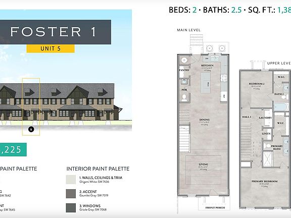 The Foster 1 - Hoover's Premier Townhome Community conveniently located off Highway 280 and everything it has to offer! Families are falling in love with the Foster 1 with its included 10ft ceilings on the main level, high end designer touches from brick accent walls to designer inspired modern beams in your living room to our sleek new kitchen designs and finishes. You'll love hosting the next game night in your large open concept living spaces on the main level. Upstairs you'll find a secondary bedroom with attached full bath, laundry, and your primary suite. The spacious primary suite and bath is the perfect place to escape to after a long day or when you're in need to a lazy day. Contact us today about all of the amazing home plans and Designer Collections Windsor Court has to offer.