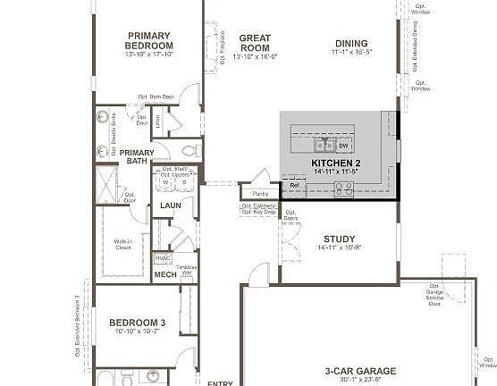 This Agate is waiting to impress with the convenience of its ranch-style layout along with designer finishes throughout. The main floor offers two generous bedrooms flanking a shared bath that make ideal accommodations for family or guests. The open layout leads you to the back of the home where a beautiful kitchen awaits and features a quartz center island, pantry and stainless steel appliances. Beyond, the open dining room flows into the welcoming great room. The nearby primary suite showcases a spacious walk-in closet with a private bath.